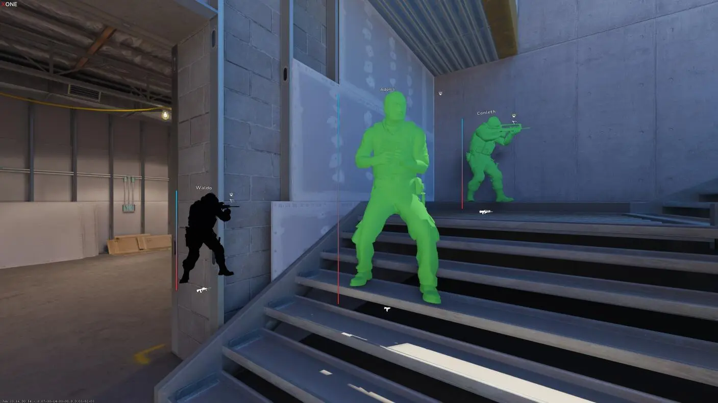 2. Wallhack(透视):激活透视后,可以透过墙看到敌人。 显示关于敌人的信息:健康状态、武器、弹药数量。